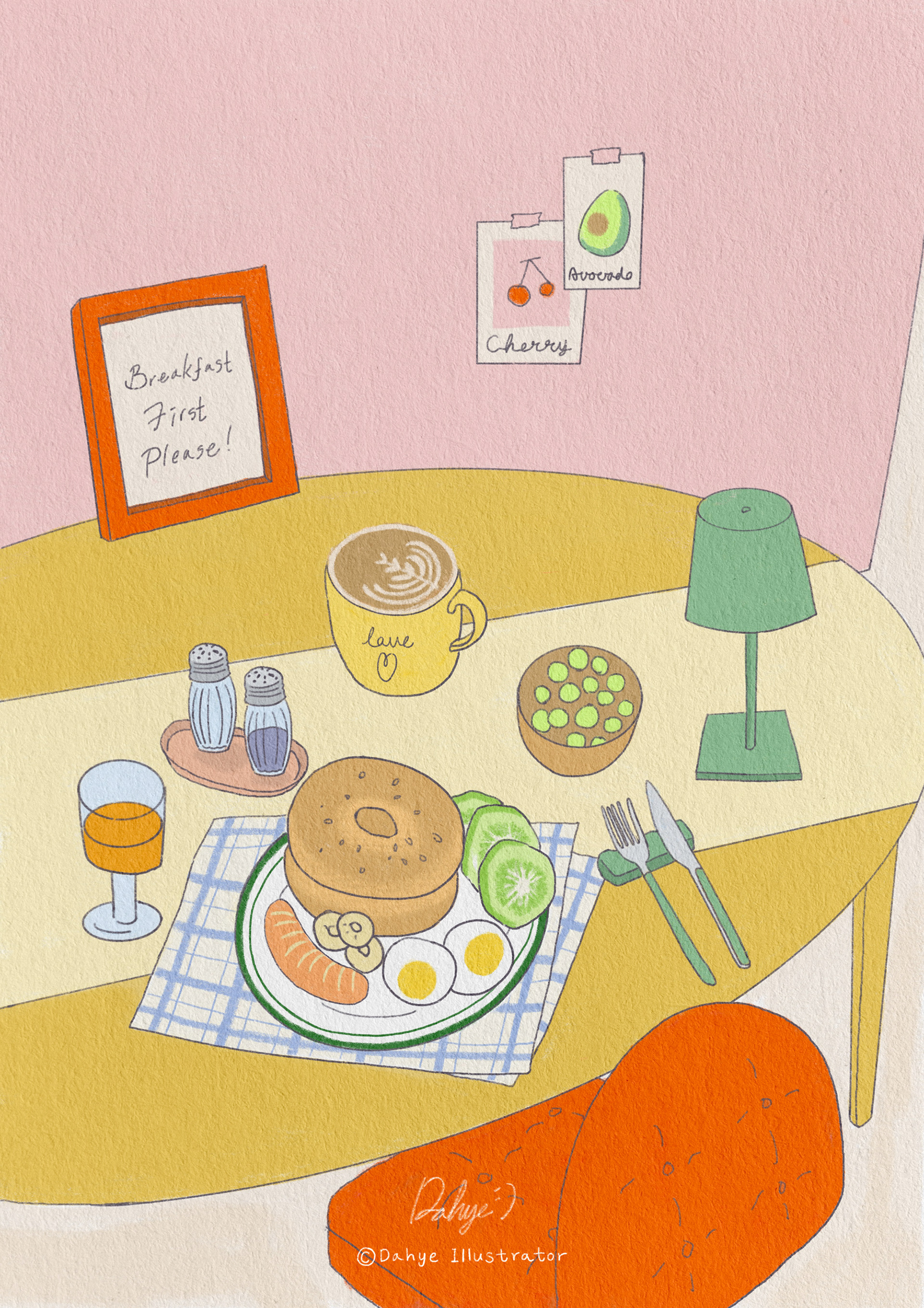 Dahye Kim is an illustrator who loves food and travel. She captures small but memorable moments from her own life with expressive drawings and a refined sense of color.